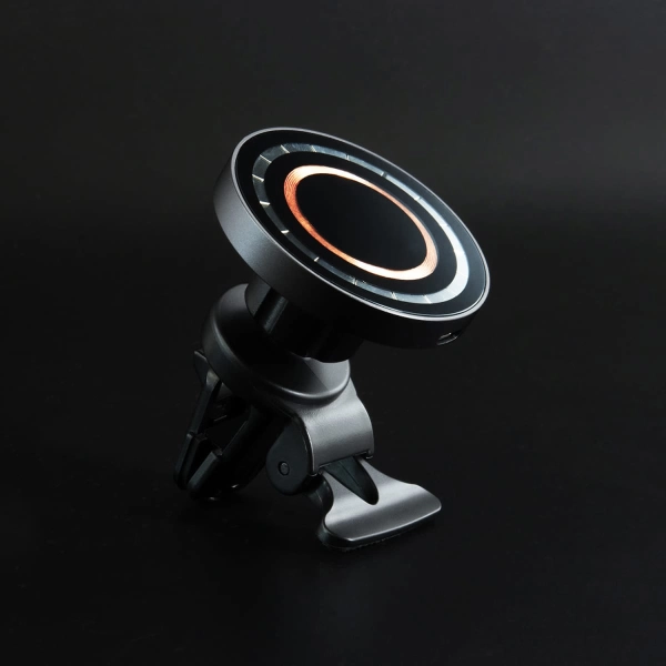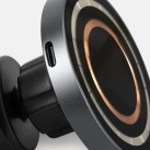 The Arc Wireless Car Charger blends innovation with elegance to deliver quality performance while on the road. Designed to seamlessly integrate into everyday life, this 15W charger clips firmly onto any car vent and features an adjustable brace for additional support. The charger comes with a metal ring for non MagSafe phones, ensuring compatibility with any device. Additional features include LED charging indicator lights, one handed placement, and the ability to use your device in either portrait or landscape positions. The sleek black glass finish, refined copper accents, and quality components make this a standout accessory. Presented in a beautifully crafted INGENIO gift box, it is ideal for corporate gifting, and the ultimate brand statement. INGENIO - Designed to lead, built to last, made to inspire.