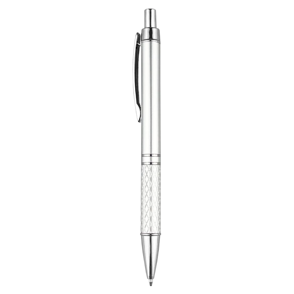 Click action plastic pen with solid matt metallic coloured barrel cross textured grip and silver accents. It has high a quality Cross-Type German manufactured black ink refill 1200 meters writing distance tungsten carbide ball provides you with quality writing. Comes standard with black ink but blue ink is available on request at additional costs.
