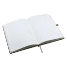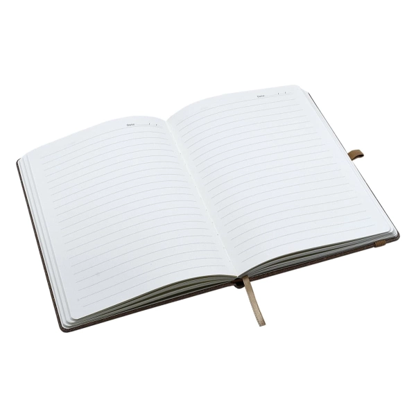 These stylish A5 notebooks are guaranteed to receive attention. Featuring a natural coloured Bonded Leather hard cover with edge stitching, 9mm wide natural coloured elastic closure, pen loop, marker ribbon and 192 pages of high quality cream paper.