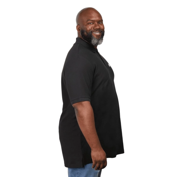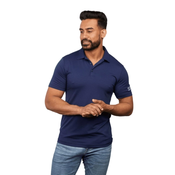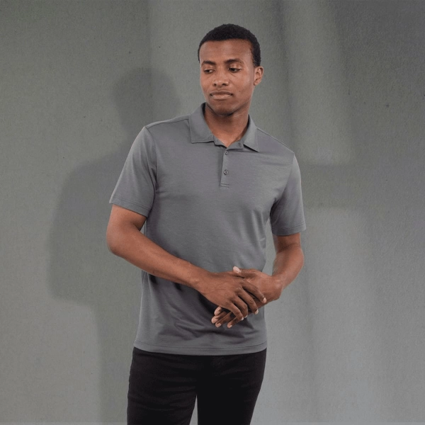 Trimark's IZU Everything Performance Eco Polo for Men showcases fabric innovation with stretch and antimicrobial properties for comfort and durability. This polo offers UV protection, odour control, snag resistance, and moisture-wicking capabilities, ideal for any occasion. Made from 85% recycled polyester certified by GRS, 10% lyocell, and 5% elastane, it combines sustainability with style, featuring a classic three-button placket with dyed-to-match buttons for a clean, modern look.