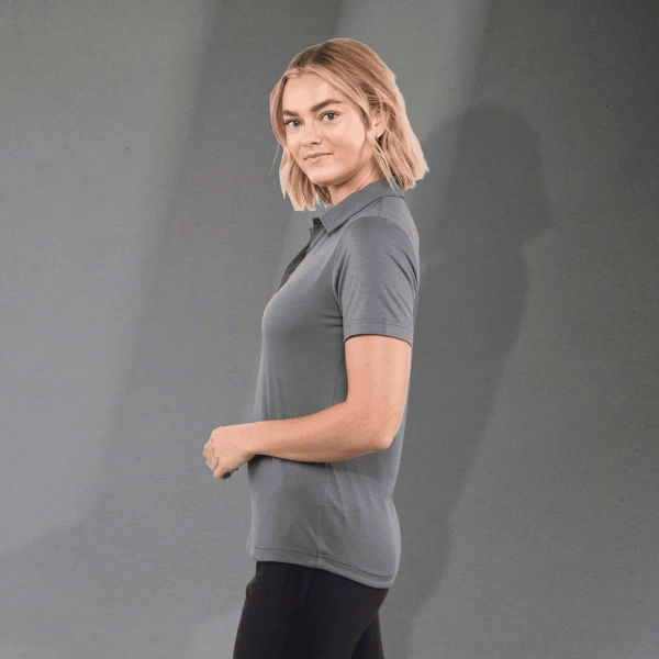 Trimark's IZU Everything Performance Eco Polo for Women showcases fabric innovation with stretch and antimicrobial properties for comfort and durability. This polo offers UV protection, anti-bacterial odour, snag resistance, and moisture-wicking capabilities, ideal for any occasion. Made from 85% recycled polyester certified by GRS, 10% lyocell, and 5% elastane, it combines sustainability with style, featuring a classic three-button placket with dyed-to-match buttons for a clean, modern look performance Polo.