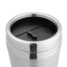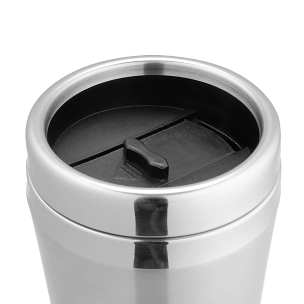 16oz stainless steel double wall travel mug which will keep drinks hot for longer food grade BPA free plastic lid has a splashproof push seal closure. This mug laser engraves to a natural stainless steel colour. This mug is not microwave and dishwasher safe and handwashing is recommended.