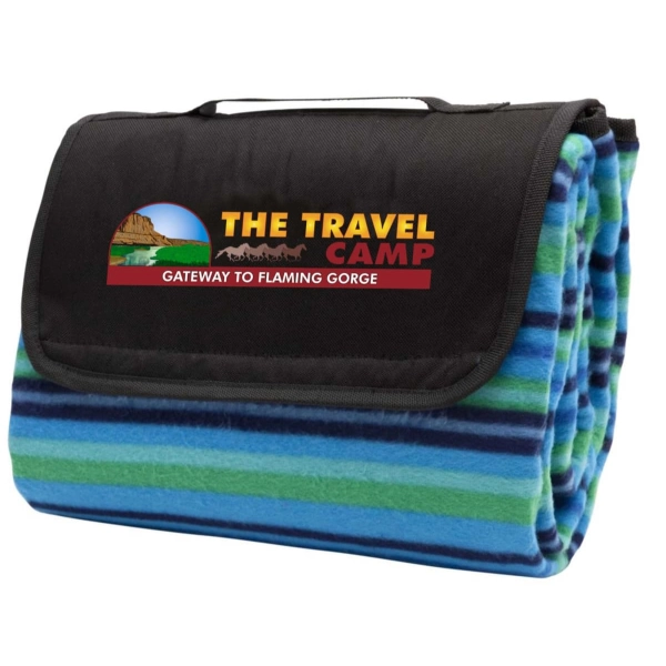 Jamaica Picnic Rug features a stylish stripe design. The rug is made from an anti-pilling fleece with a water resistant backing.