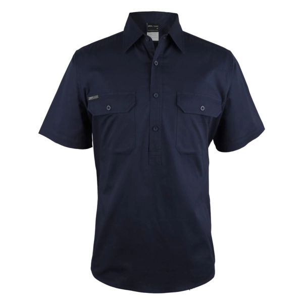 Classic fit | 100% Cotton for 100% comfort in a 150gsm drill | Complies with standard AS 4399:2020 for UPF protection (UPF 50+) | Wide back neck yoke with concealed mesh, cooling gussets at underarm | Closed front design | Two front pockets with button down flaps and pen insert | Curved hem with back tail styling | Two piece collar