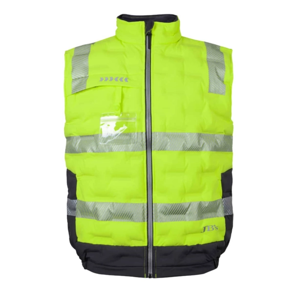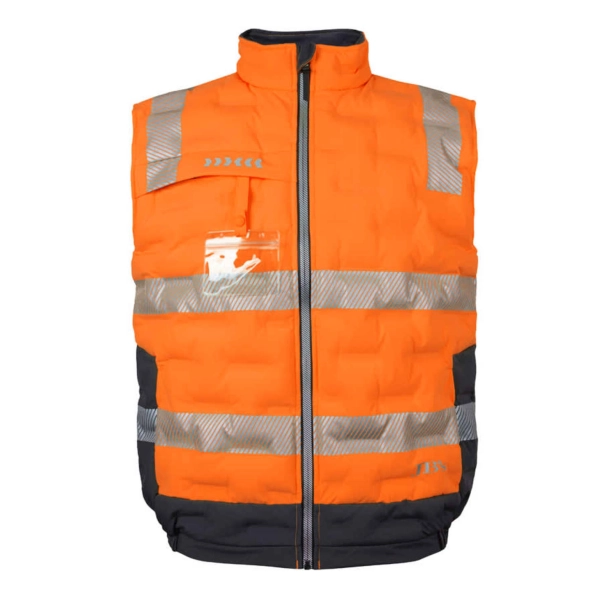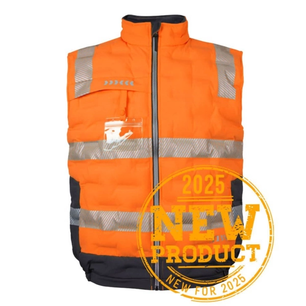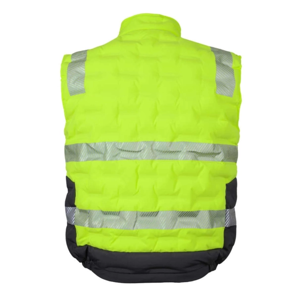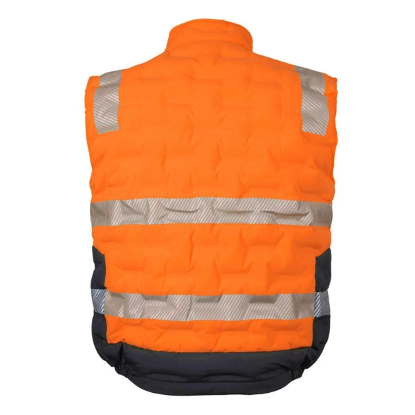 Slim fit | Polyester stretch shell fabric laminated with tricot and membrane | Silver Graphene on the upper back absorbs and distributes body heat evenly, providing ultimate warmth in cold weather | Waterproof rating 3,000mm | Fully padded in soft polyfill | Segmented reflective tapes and zip closure | Side pockets with zip closure | Brushed fleece pocket bag to keep hands warm | Right hand chest pocket with ID holder | Embroidery access at front placket | Complies with Standards AS/NZS 1906.4:2023 and AS 4602.1:2024 Day & Night