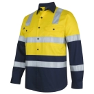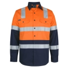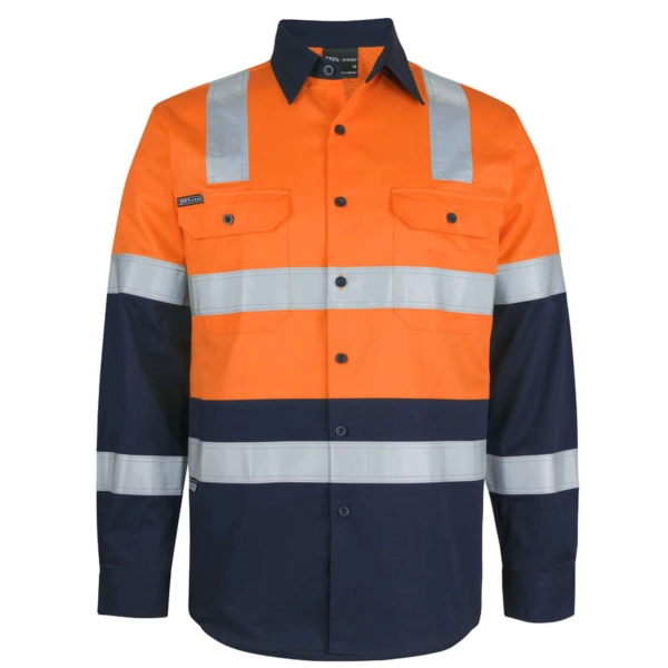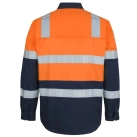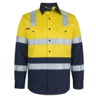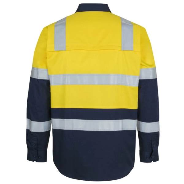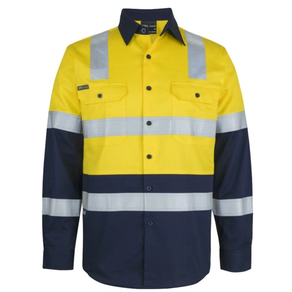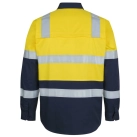 Classic fit | 100% Cotton for 100% comfort in a 150gsm double pre-shrunk drill | JB's reflective tape stands up to 50 times domestic wash | Complies with Standards AS/NZS 1906.4:2023 and AS 4602.1:2024 Class D/N: Day & Night (LEVEL 3) | Complies with Standard AS 4399:2020 for UPF Protection | Wide back neck yoke with concealed mesh, cooling gussets at underarms | Two front pockets with button down flaps and pen insert | Contrast panel on front, back and collar | Curved hem with back tail styling | Two piece collar