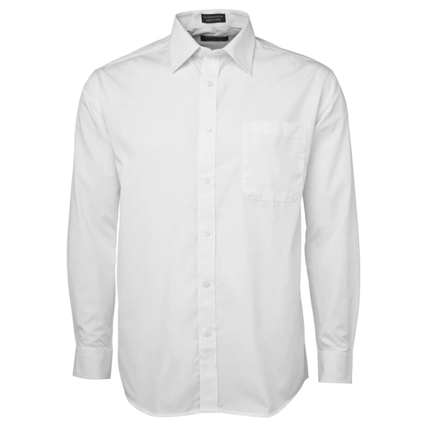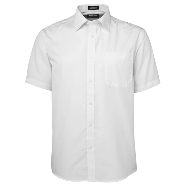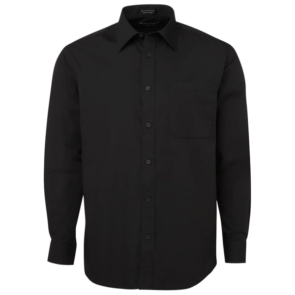 Classic fit | 65% Polyester for durability, and 35% Cotton poplin for comfort, 115gsm | Two-piece collar and collar stand | Chest pocket | Double back yoke with two inverted pleats | Curved hem | Easy care fabric | Individually packed in JB's logo bag with fit measurement guide