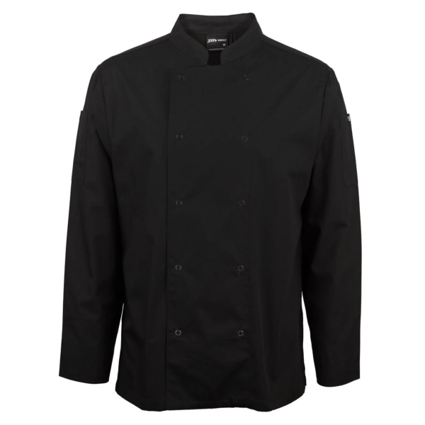 Classic fit | 65% Polyester for durability, and 35% Cotton for comfort | 180gsm light weight | Mesh under arm and back yoke for airflow | Pen pocket on both sleeves | Snap button closure for quick open and closure | Centre back tab for apron strap to go through