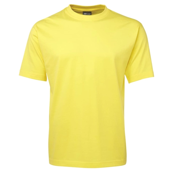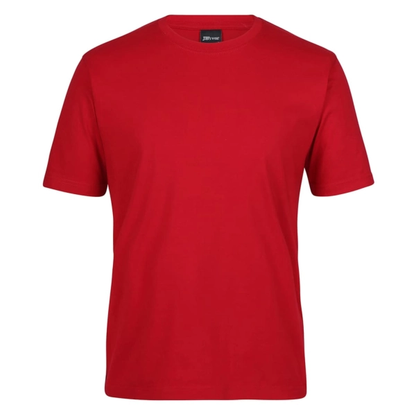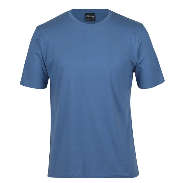 Classic fit | 100% Cotton for 100% Comfort | JB's Shape Staying elastane rib crew neck | *13% Marle & Snow Marle: Cotton/Viscose blend | *Denim, Graphite & Army Marle: Cotton/Polyester | *Charcoal & Grey Marle: Polyester/Cotton | Self-fabric tape on inside of neck and shoulders for improved stability | Heavy 190gsm ring spun Jersey knit fabric | Twin needle double stitched seams | Complies with Standard AS 4399:2020 for UPF Protection | Vertical side seams minimise twist in the tee’s body | 3XS only in Blue Duck | 2XS, XS only in Aqua, Blue Duck, Jnr Navy, Black, Red, Denim Marle, Pea Green, Lime, Army, Army Marle, Bottle, Charcoal Marle, Grey Marle, 13% Marle, Jade, Bone, Maroon, Navy, Orange, Purple, Graphite Marle, Steel, Royal, Snow Marle, Gunmetal, Yellow, White, Gold, Hot Pink | 6/7XL only in White, Black, Navy, Bottle | 8/9XL, 10/11XL, 12/13XL only in Black