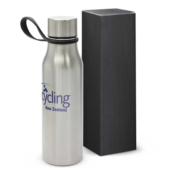 Smart 550ml BPA-free, double wall, vacuum insulated stainless steel drink bottle which will keep drinks cold for 24 hours or hot for up to 12 hours. It has a secure screw on stainless steel lid and a soft silicone carry handle. Jericho laser engraves to a natural etch and is presented in a black gift box or optional gift tube. This product is not dishwasher safe and handwashing is recommended.