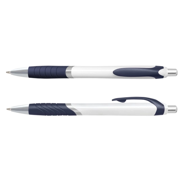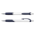 Retractable plastic ballpoint pen with a white barrel, a soft-touch grip and shiny chrome trim. It has a black or blue refill with 1200 metres of German manufactured Dokumental ink and can be presented in an optional pen sleeve.