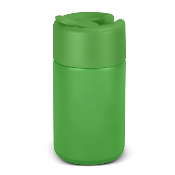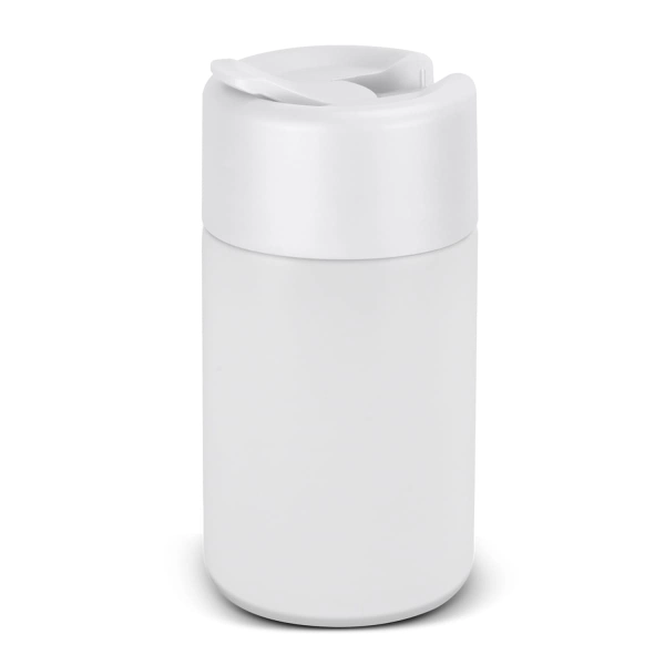 A 300ml stainless steel vacuum cup, designed with a screw on flip lid, is a stylish and practical choice for on-the-go hydration. The colour match lid and cup create a retail inspired look. This cup combines functionality with sleek design to suit any personal style.