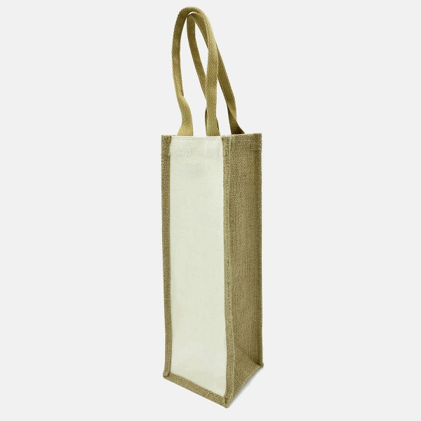 Pop a cork and raise a glass to the Jute Single Wine Bag, your bottle’s new best mate. Made from sturdy canvas and jute with a laminated inner, it fits one bottle of wine, gourmet oil or sauce like it was made for it. Great for wineries, restaurants and foodie events, this tote folds flat when not in use, saving space without skimping on charm.
