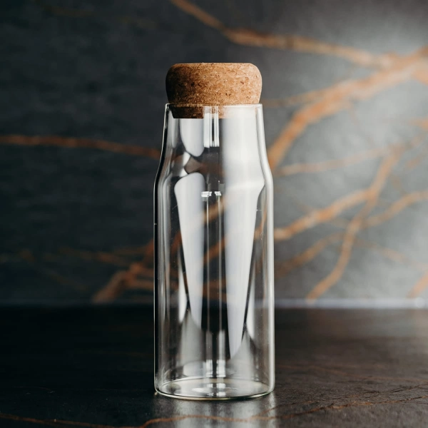 This elegant 800ml carafe is perfect for entertaining and is made from borosilicate glass, which is lightweight, strong and impact-resistant. Onsen is fitted with a natural cork lid and is presented in a natural gift box with Keepsake branding.