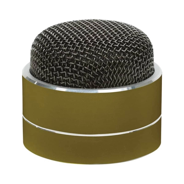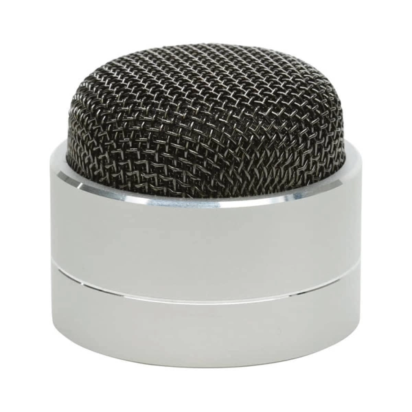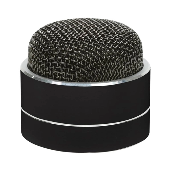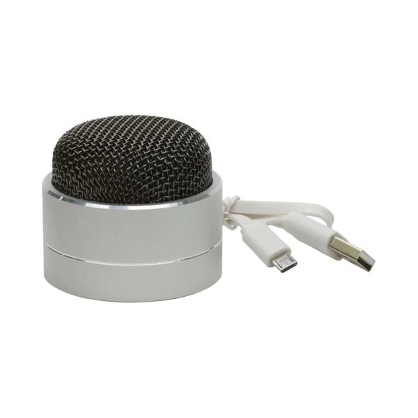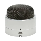 Microphone look Bluetooth speaker with contrasting aluminium alloy case offering both Bluetooth and direct audio line input to allows access to smartphones, PC and notebook. Includes a USB charge cable and user manual.