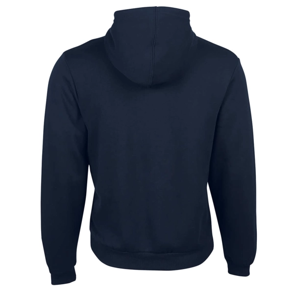 Urban Fit | 65% Polyester for durability, and 35% Cotton for comfort 280gsm | Front Kangaroo pocket | Hood with drawcord (No draw cord on kids sizes) | 2x2 rib sleeve cuffs and bottom hem with elastane | Full zip | Set-in sleeves | 2XS & XS only available in Black Marle, Navy