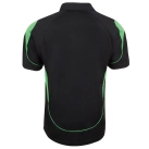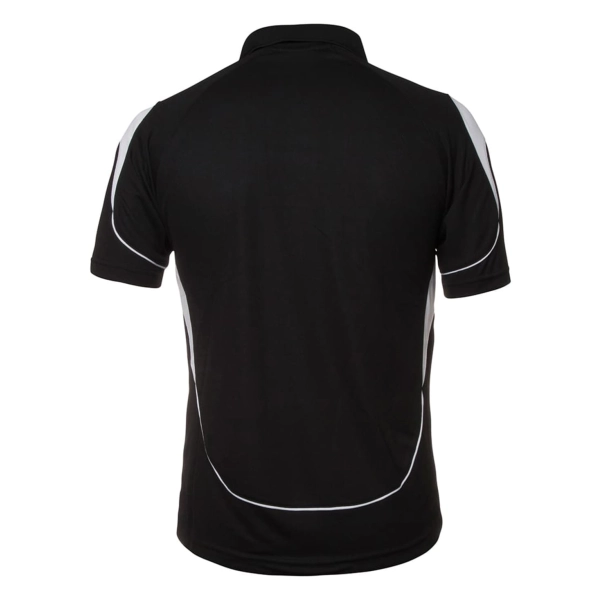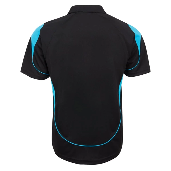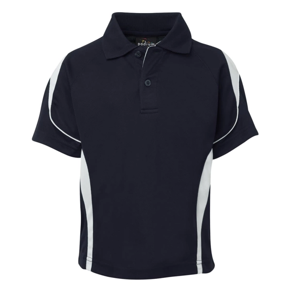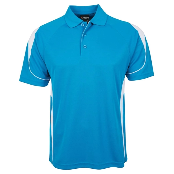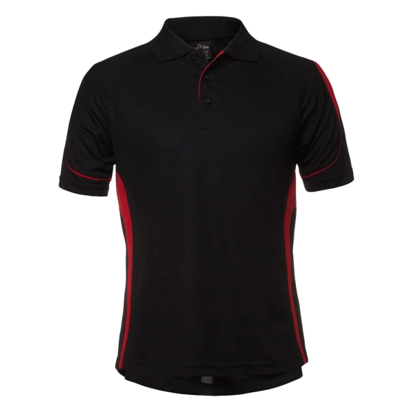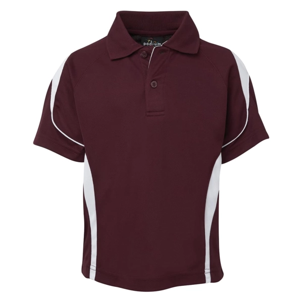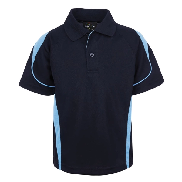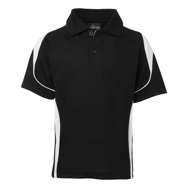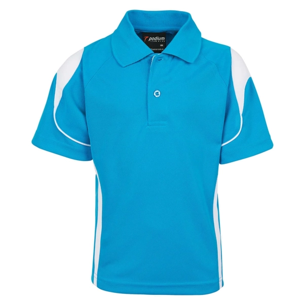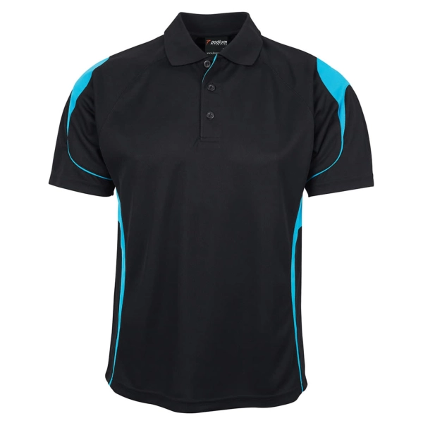 Urban fit | 100% Polyester, 160gsm pique knit fabric | Podium Cool™ moisture wicking fabric designed to help keep you cool and dry | 3-button placket for Adults and 2-button for kids | Easy care, quick drying fabric | Complies with Standard AS 4399:2020 for UPF Protection | 2XS, XS only in Black/Red, Black/Pea Green, Black/White, Black/Aqua | 3XS only in Black/Aqua