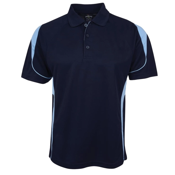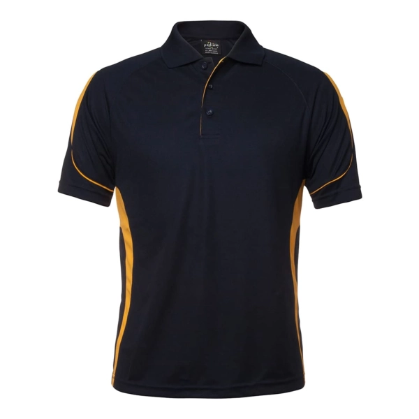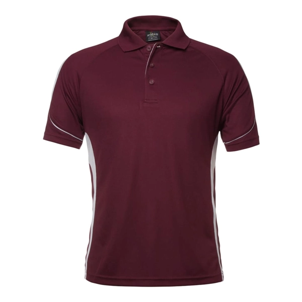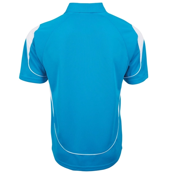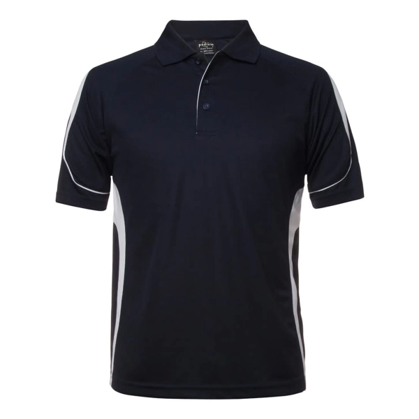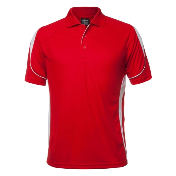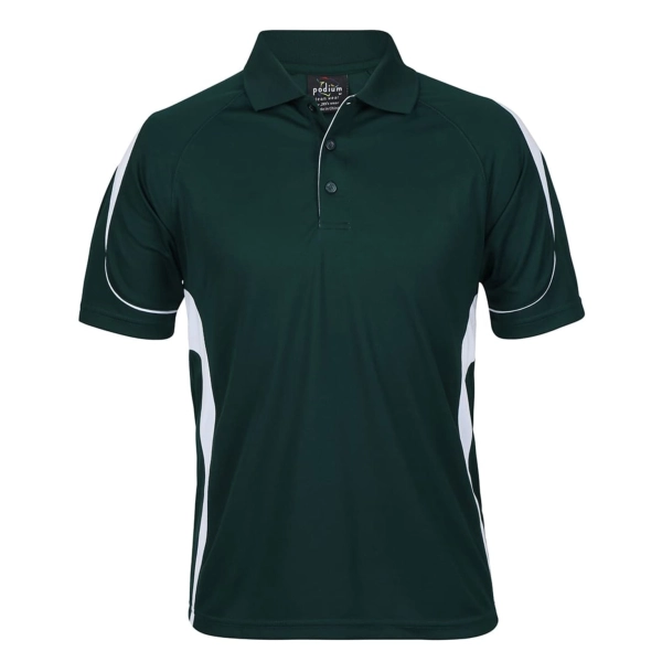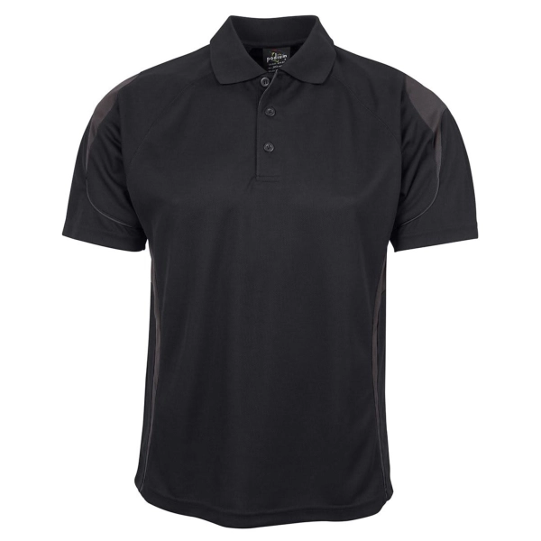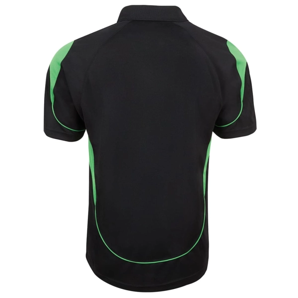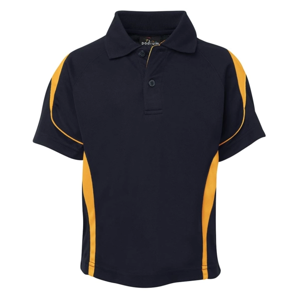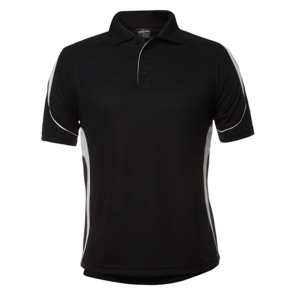 Urban fit | 100% Polyester, 160gsm pique knit fabric | Podium Cool™ moisture wicking fabric designed to help keep you cool and dry | 3-button placket for Adults and 2-button for kids | Easy care, quick drying fabric | Complies with Standard AS 4399:2020 for UPF Protection | 2XS, XS only in Black/Red, Black/Pea Green, Black/White, Black/Aqua | 3XS only in Black/Aqua