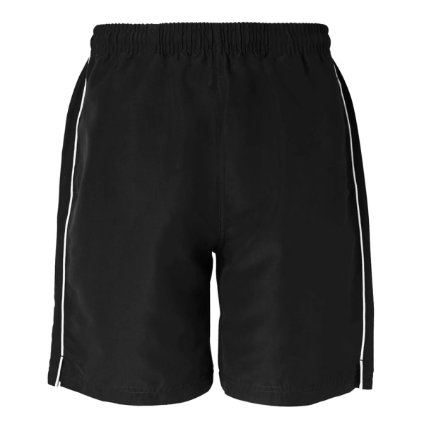 Classic fit | 100% Polyester for durability, 125gsm | Side splits at leg opening, elastic waist | Cut to above the knee, with two side pockets and one back pocket with zip closure