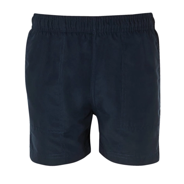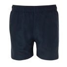 100% Polyester for durability, 125gsm | Polyester mesh brief lining | Two slant side pockets and one hip pocket with zip closure | Side splits at leg opening, Elastic waist | Mid-thigh length