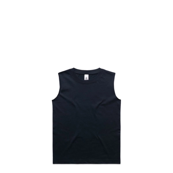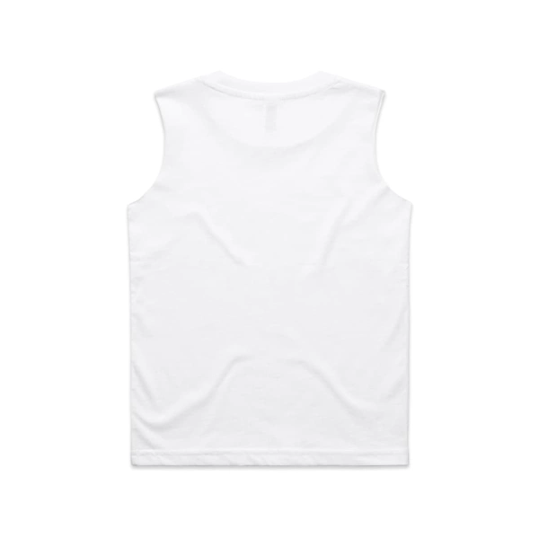 Sleeveless tank, raw armhole edges, neck ribbing, side seamed, double needle bottom hem, preshrunk to minimise shrinkage