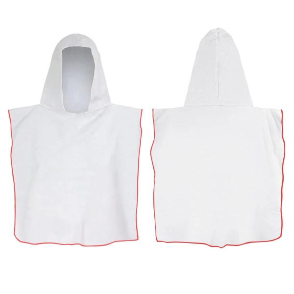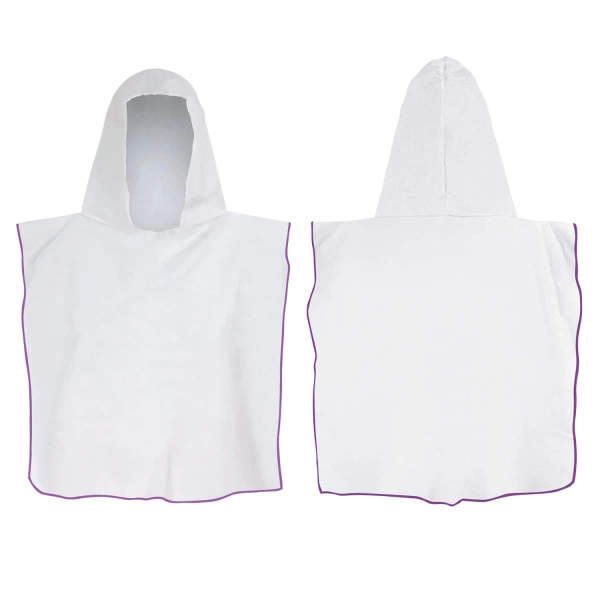Kids size hooded towel which is ideal for staying warm and dry after swimming or at the beach. It is manufactured from soft 250gsm microfibre and can be branded on one side with edge-to-edge full colour print. There is a choice of eight overlocking thread colours. A production lead time of 30 working days applies to this product by air freight and larger orders can be sea freighted on request to reduce the freight cost.