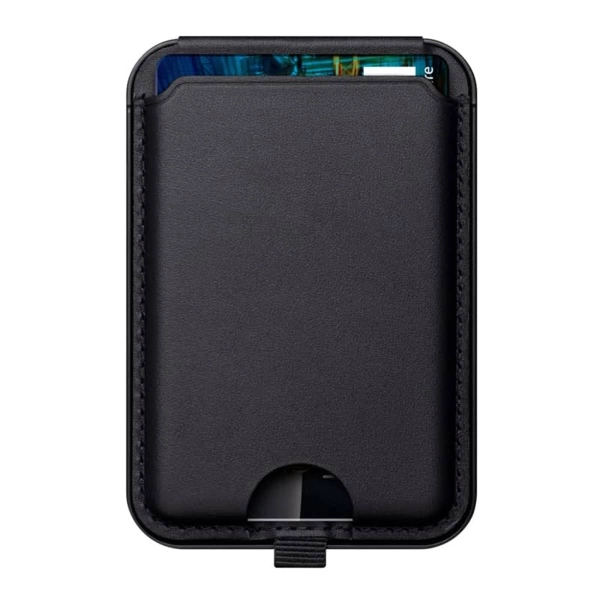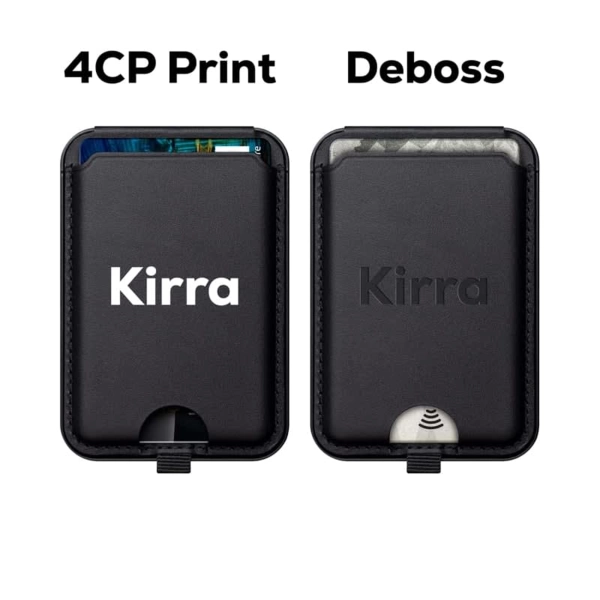 The Kirra magnetic card wallet is an accessory for Magsafe-compatible iPhone cases. It has extra-strong magnets that align with and stay securely attached to the back of the case. Made from durable PU leather, the wallet has a cut-out that allows easy access to up to three cards. Additionally, it features a stitched tab that enables hassle-free stand-opening and provides an adjustable stand for multi-angle viewing in portrait and landscape orientation. Includes an extra magnetic ring to work with non-magnetic smartphone. Material: PU Leather.