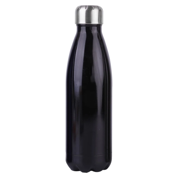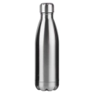 Trendy design of 500ml BPA free stainless steel vacuumed double wall drink bottle with shiny glossy metallic finishing made of 304 grade stainless steel high quality leak proof with stainless screw on lid engraves to a natural silver etch colour. It keeps drinks cold for 24 hours or hot for up to 12 hours handwashing is recommended.