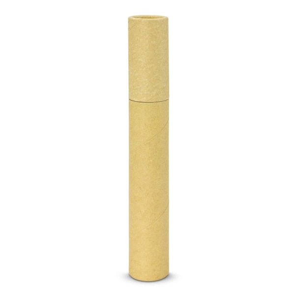 Handy pen and pencil set in a natural unbleached cardboard tube. The set contains two unpainted wood HB pencils and two pens which are manufactured from natural unbleached paper. The pens both have black ink and push on caps.