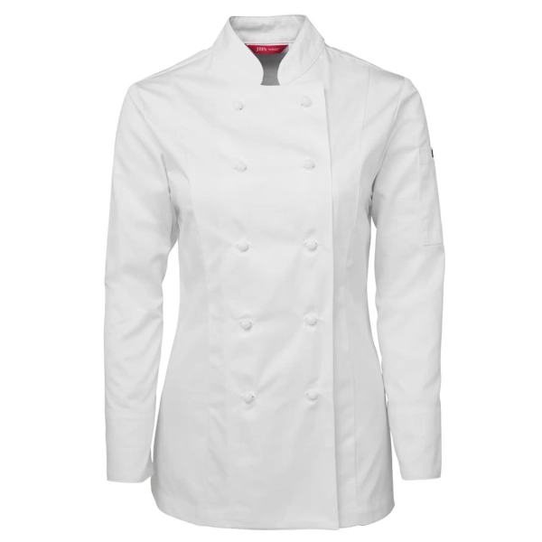 Classic Fit | 65% Polyester for durability, and 35% Cotton for comfort | 245gsm drill fabric | Mandarin collar | Double breasted | 10 interchangeable buttons | Cut and sewn panels for a tailored shape | Side splits for added comfort | 2 pen pockets on sleeve