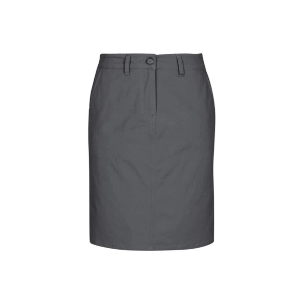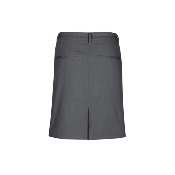 Curved waistband with 2 side angled pockets, 2 back patch pockets