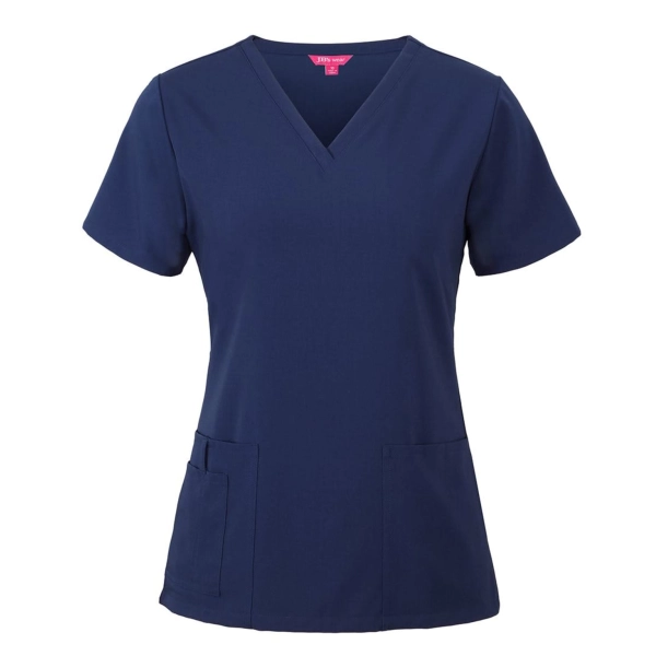 Urban fit | 71% Polyester for durability, 24% Viscose for comfort and 5% elastane for extra stretch, 185gsm | V-neck styling with back yoke and waist dart | 2 lower pockets | Right hand pocket with additional patch pocket, pen insert and key loop | Side split for extra comfort