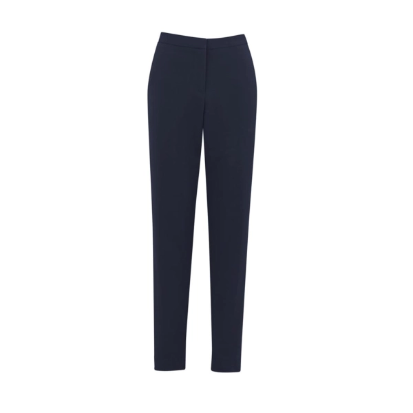 No side pockets or belt loops creates a clean sleek appearance at waist and hips