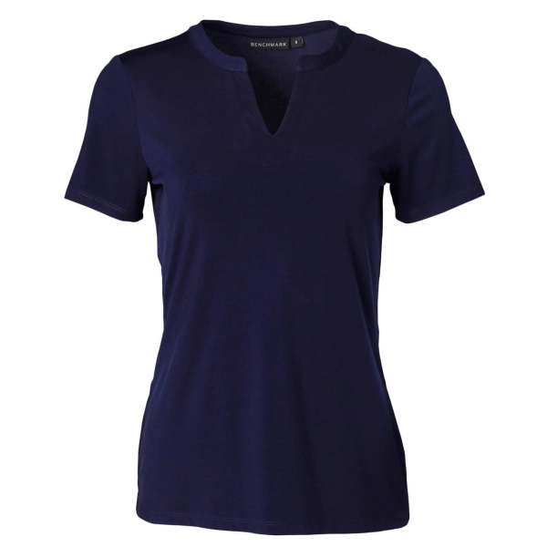 Ladies' V-neck with Tab S/S Knit Top