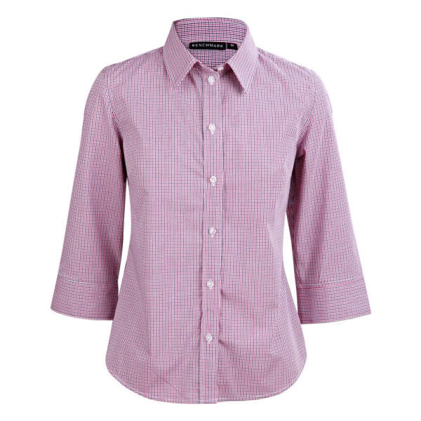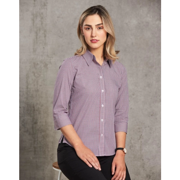 Ladies' Two Tone Mini Check 3/4 Sleeve Shirt