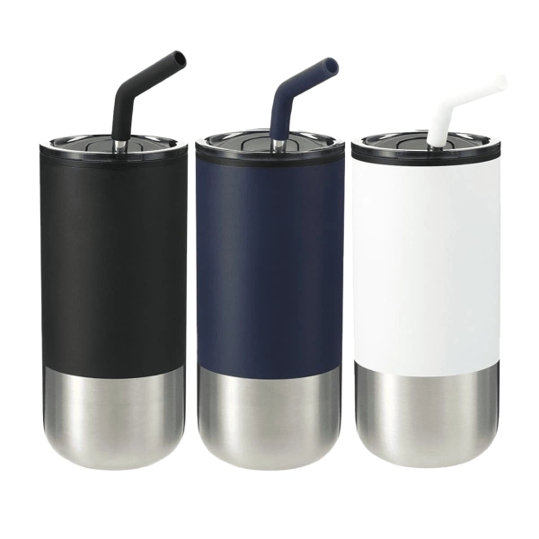 The Lagom 470ml Tumbler with Stainless Steel Straw features durable double-wall construction with built-in insulation to keep your beverages hot or cold in any environment. It comes with a food-grade stainless steel straw that has a comfortable removable silicone tip for safe and convenient sipping. The Lagom also includes a spill-proof press-on lid, which features a slide closure. The included straw is an eco-friendly, environmentally responsible, and sustainable alternative to disposable plastic straws. Presented in individual Kraft Giftbox for added protection and presentation.