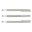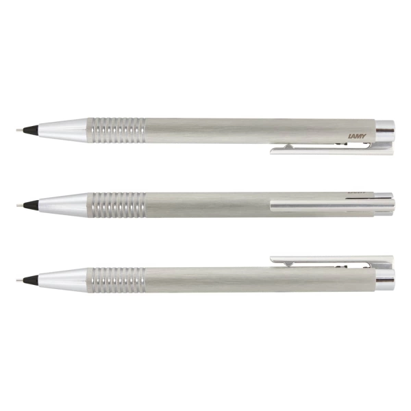 Superb pen and pencil set featuring a brushed stainless steel retractable ball pen delightfully partnered with a matching mechanical pencil. Both have a finely tuned, spring-loaded metal clip and matching shiny chrome accents. The ball pen has a black LAMY M16 refill with 8000 metres of writing ink and a tungsten carbide ball for improved writing quality. The pencil has a 0.5mm LAMY M41 HB lead refill and both barrels laser engrave to a natural etch. Logo is 100% made in Germany with the LAMY brand tastefully inscribed on the upper barrel and the set is beautifully presented in a LAMY gift box.