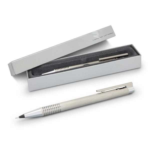Timeless mechanical pencil which is manufactured from brushed stainless steel with a finely tuned, spring-loaded metal clip and matching shiny chrome accents. It has a 0.5mm LAMY M41 HB lead refill and is 100% made in Germany. The LAMY logo is engraved on the upper barrel and it is beautifully presented in a LAMY gift box.