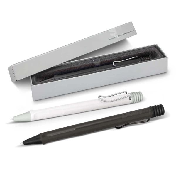Timeless ballpoint pen which is made from highly polished ABS plastic with a spring-loaded clip and a soft rubber push button. It has a black LAMY M16 refill with 8000 metres of writing ink and is 100% made in Germany. The LAMY logo is tastefully moulded in the upper barrel and it is beautifully presented in a LAMY gift box.