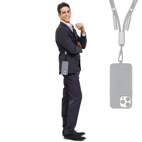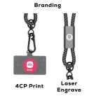 Lany Charge Eco – the ultimate accessory for digital nomads! This versatile cord doubles as a stylish phone strap and a powerful 60W fast charging and USB 2.0 data cable, compatible with USB-C and Apple Lightning devices. It's a one-stop solution for all your charging and data transfer needs. This cord covers whether you need to charge your phone, tablet, or laptop, transfer files, or sync data. The Lany Charge Eco and its phone case patch are crafted from recycled PET bottles, making them an eco-friendly choice. Opting for this product gives you a convenient and versatile gadget that reduces plastic waste and protects the environment. This phone cord makes the perfect corporate gift for employees, clients, or partners who are always on the move. It's a practical, fashionable, and sustainable way of showing appreciation and support. Impress your recipients with this innovative and helpful product! Material: Aluminium, RPET.