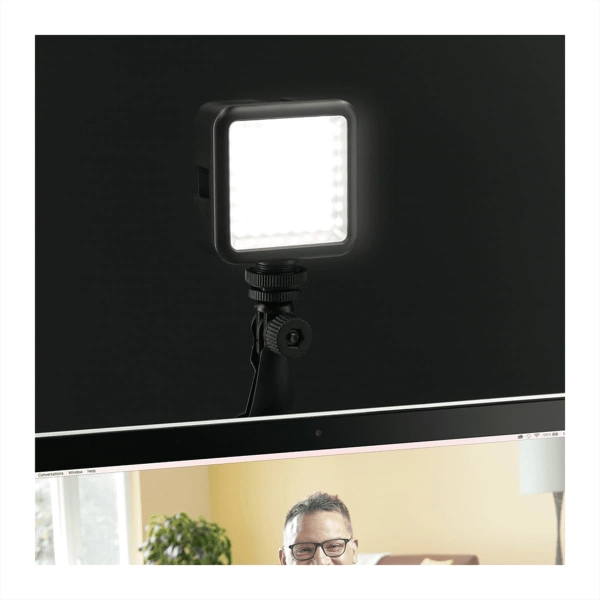 The Laptop & Tablet Portable Video Light instantly increases the clarity of your laptop or tablet camera. Making it the perfect accessory for your laptop or tablet. With virtual meetings becoming the new “norm” the light can be used for video conferences through Skype, Teams, or Zoom! The 49 built in LED Lights can be adjusted to increase the brightness of the lights. The Light can be mounted to a laptop, tablet, or camera with the included mounting accessories. The light includes 2 AA batteries that will provide up to 160 minutes of continuous use. Colour Temperature: 6000K. 5.5Watt Max Output.