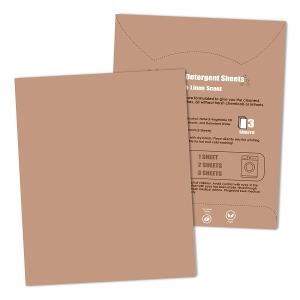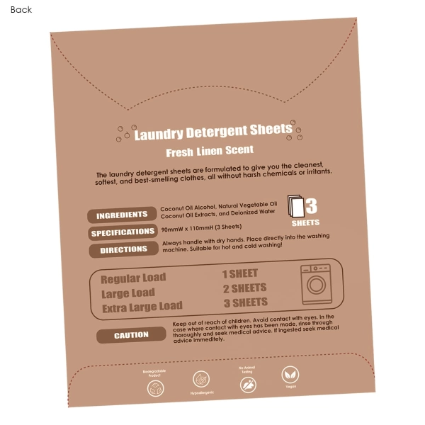 Place your logo on this 3-Sheet Set of Laundry Detergent Sheets, featuring a fresh linen scent. These eco-friendly sheets are vegan, hypoallergenic, biodegradable, and cruelty-free, making them a thoughtful choice for all. This laundry paper detergent sheets are Infused with natural moisturizers that leave skin soft and supple. The gentle formula creates a luxurious lather that won't dry out your skin, ideal for both adults and kids, even for the most sensitive skin. These detergent strips adopt polymer concentration technology, small size but thick enough with super cleaning power. All ingredients contain no harsh chemicals. Their universal appeal and sustainable design provide a unique way for people to remember your brand while promoting an environmentally conscious message.