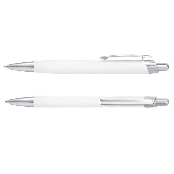 Sleek retractable ballpoint pen featuring a recycled aluminium barrel, recycled ABS components, and a matte finish with shiny chrome trim. Featuring a blue refill with 800 metres of German manufactured Dokumental ink. Available with an optional pen sleeve.