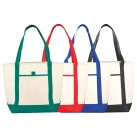 Open main compartment with double 24 inch handles. Open front pocket with pen loop. Body of bag is natural colour. Reusable and a great alternative to plastic bags. Capacity of approximately 24L.