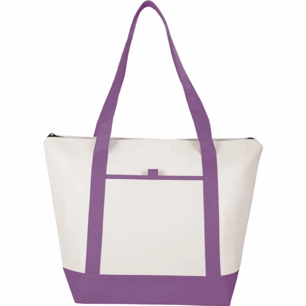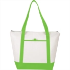 Insulated with heat-sealed water-resistant lining. Zippered main compartment with double 24 inch handles. Open front pocket with pen loop. Capacity of approximately 24L.