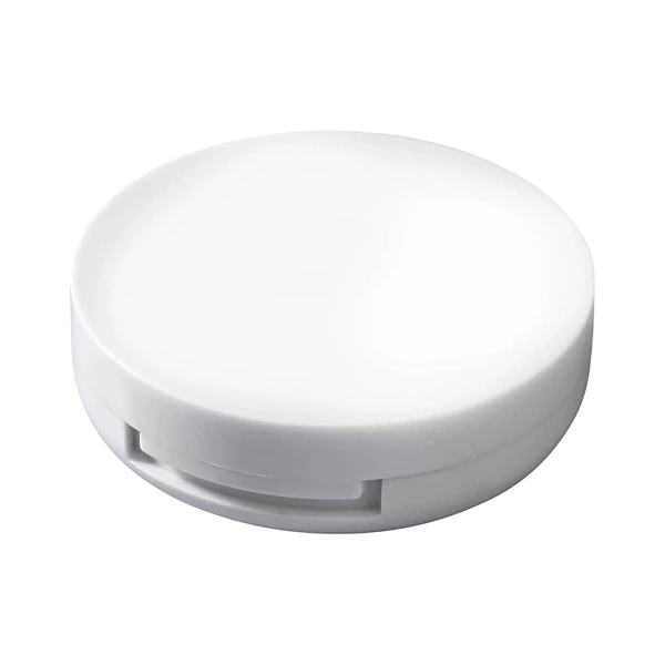 7g vanilla flavoured moisturizing lip gloss in a white plastic case with a compact mirror on the lid meets FDA requirements fits in pocket or purse.