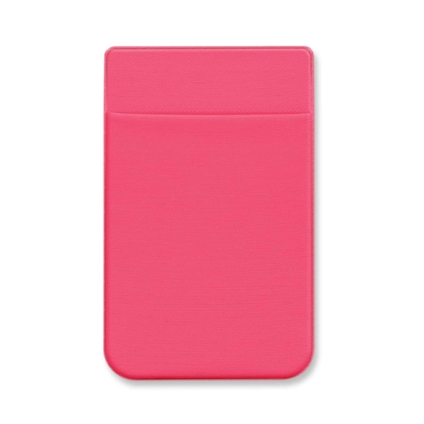 Soft and stretchy wallet which adheres securely to the back of a phone or phone case with strong adhesive that won't leave marks if it is removed. It is ideal for holding a driver's licence, ID, hotel key, credit cards, business cards, cash, house or car key and will even stretch to hold a set of earbuds. A production lead time of 20 working days applies to this product by air freight and larger orders can be sea freighted on request to reduce the freight cost.