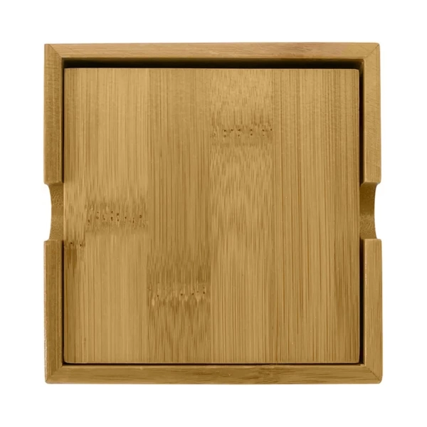 A set of 4 bamboo coasters with a holder. They are incredibly durable and make a great housewarming gift.