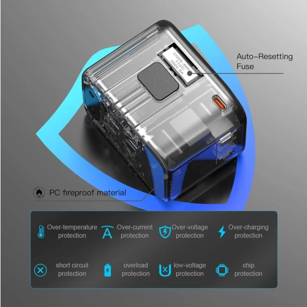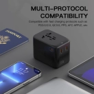The 65W Madern USB travel adaptor is a stylish and lightweight option for charging your devices on the go. This travel adaptor features three Type-C ports and one USB-A port, allowing you to charge multiple devices simultaneously. The GaN charger supports PD 3.0/2.0, QC3.0, and PPS, providing intelligent charging technology to optimise the charging process for USB devices. In single-mode output, the USB-C1/C2/C3 ports can fully charge a laptop in about 2 hours or bring an iPhone 14 from 0 to 54% in 30 minutes. The Madern adapter includes safety features such as a single-plug safety design, built-in safety shutters, integrated surge protection, and an auto-resetting fuse, making it safe in over 180 countries worldwide. It is suitable for charging smartphones, tablets, and laptops. Please Note: This adapter is intended for international travel and is not certified for use in Australia or New Zealand. It also does not convert voltage from 110 to 240 volts or vice versa. Materials: ABS, Copper, Fire Retardant PC.