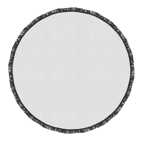 Trendy 150cm round beach towel which is manufactured from fast-drying 240gsm polyester with optional white or black tassels. It can be branded on one side with edge-to-edge full colour print and there is a choice of eight overlocking thread colours. A production lead time of 30 working days applies to this product by air freight and larger orders can be sea freighted on request to reduce the freight cost.